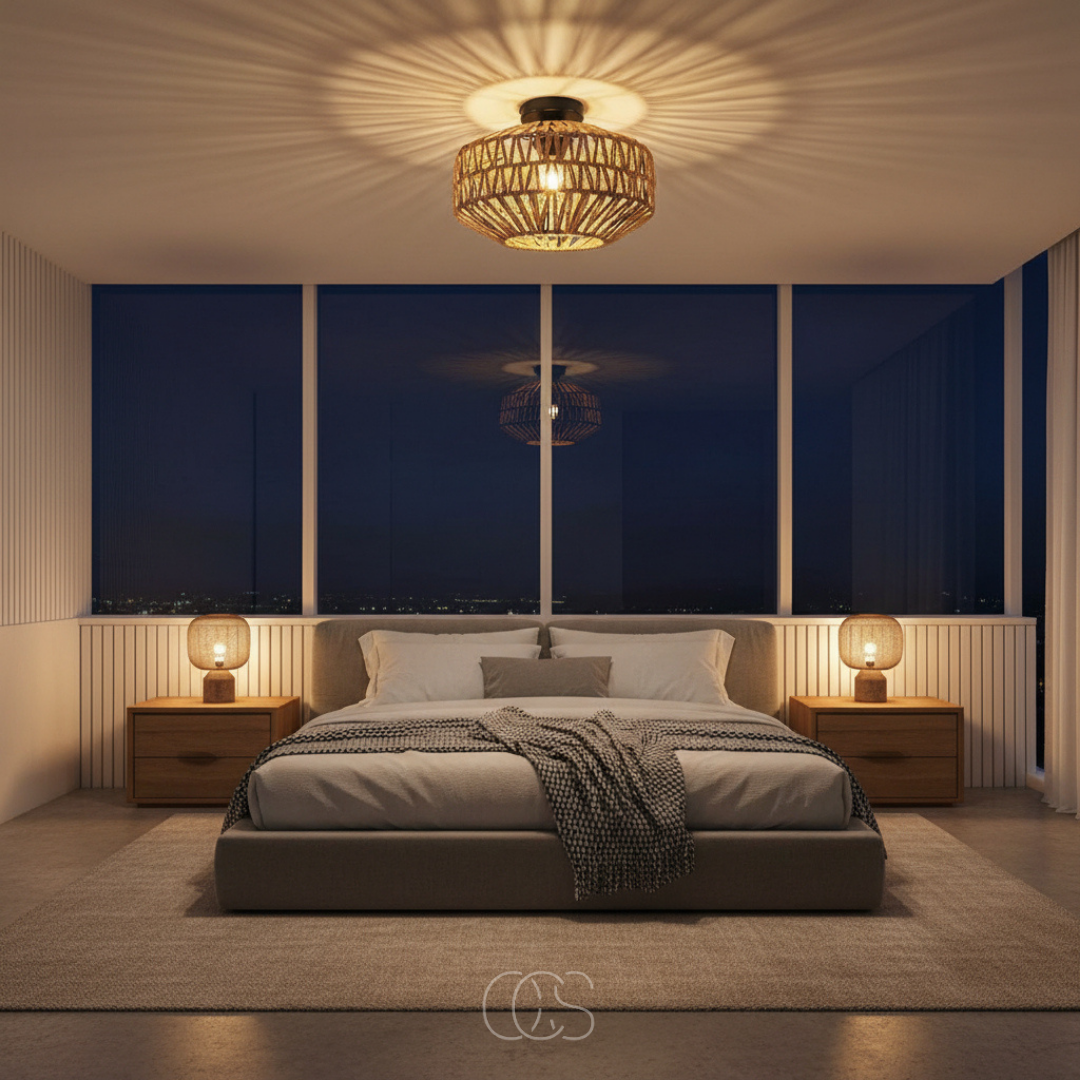 Het natuurlijke rotan geeft een zacht, gezellig licht dat je direct laat ontspannen. En zodra je het licht aanklikt, danst er een prachtig patroon over je plafond. Dat is het moment dat je denkt: Ja. Dit is hoe thuis hoort te voelen.
