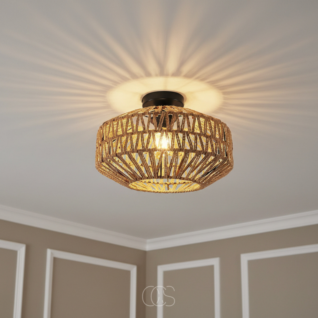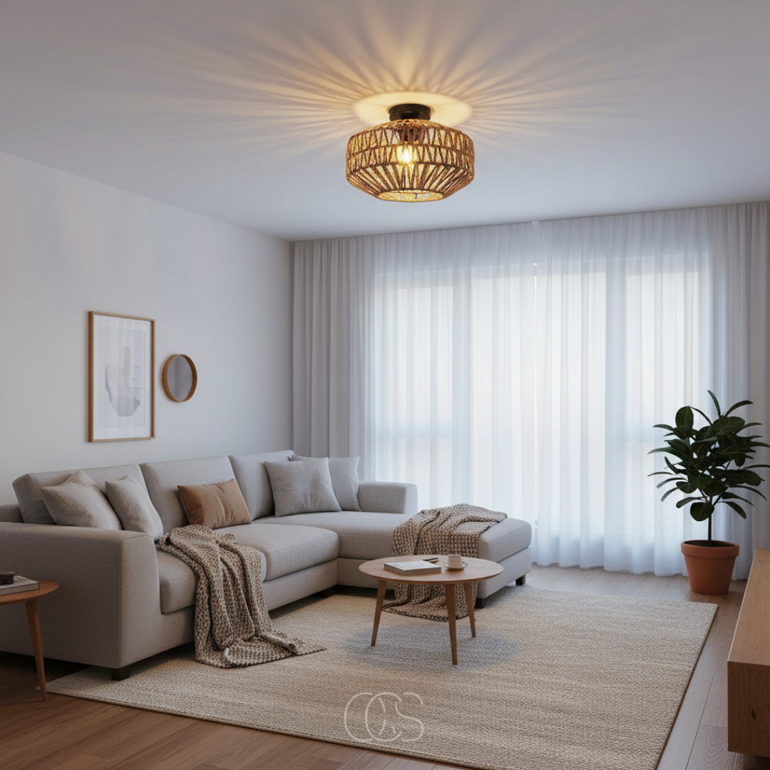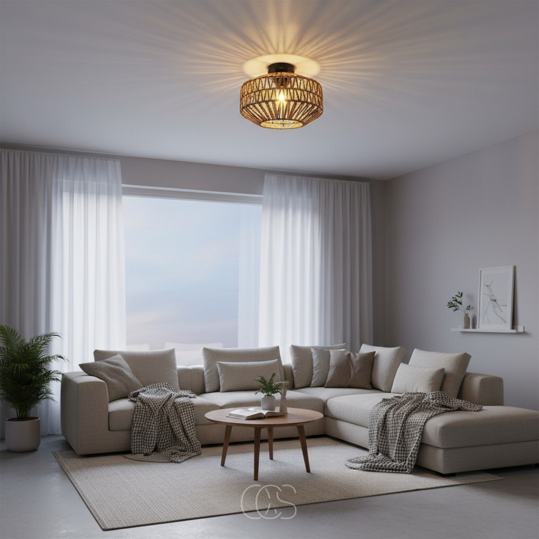 Soms loop je door je huis en voel je het: er mist iets. Je hebt mooie meubels, fijne kleuren… maar de sfeer is nog niet helemaal zoals jij het in je hoofd hebt. De Lina Rotan Plafondlamp zorgt precies voor dat ontbrekende stukje warmte.
