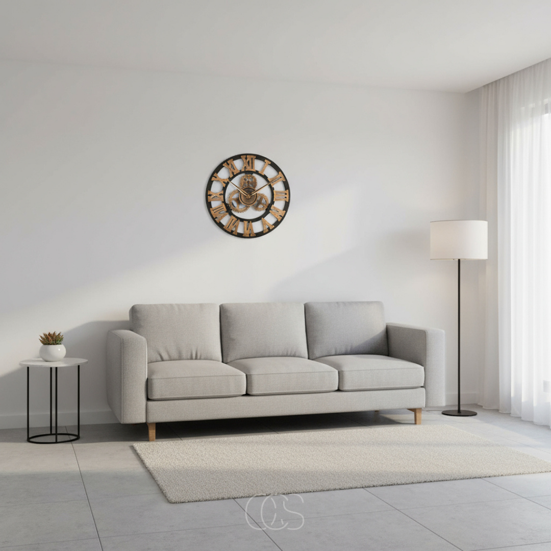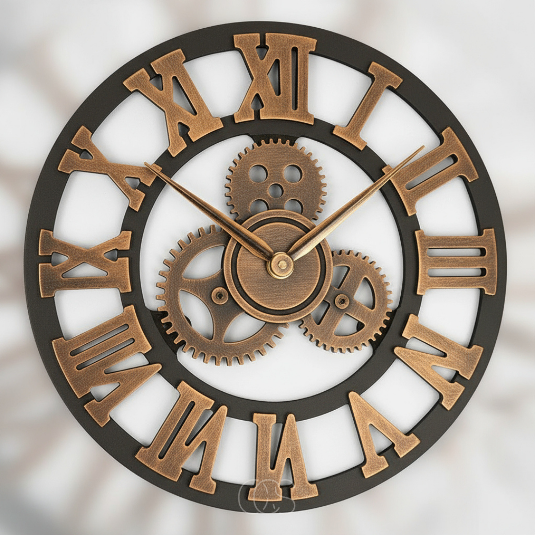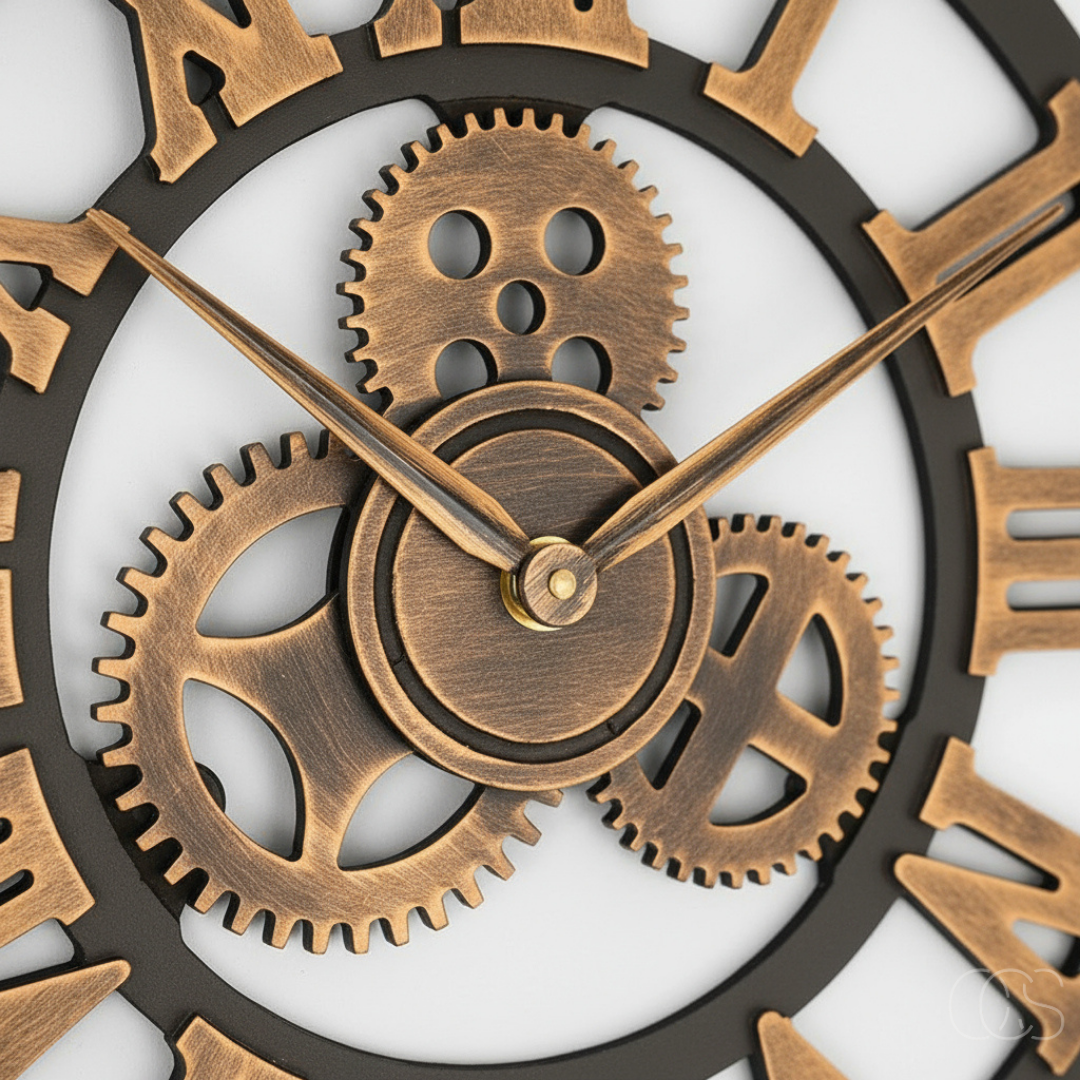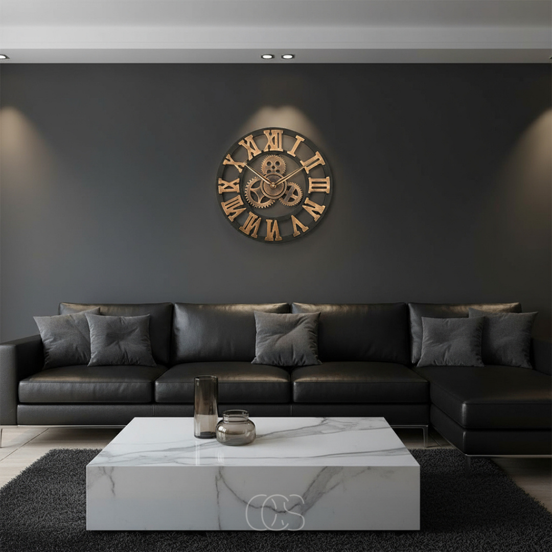 OCS - Grote Stille Industriële Wandklok met Tandwielen