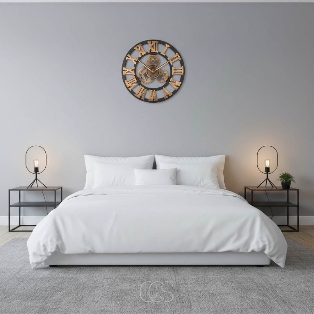 Het robuuste metalen frame, de open structuur en de zichtbare tandwielen maken deze klok tot méér dan een tijdsaanduiding. Dit is een statement. Een decoratief element dat karakter, diepte en volwassenheid toevoegt aan je interieur.