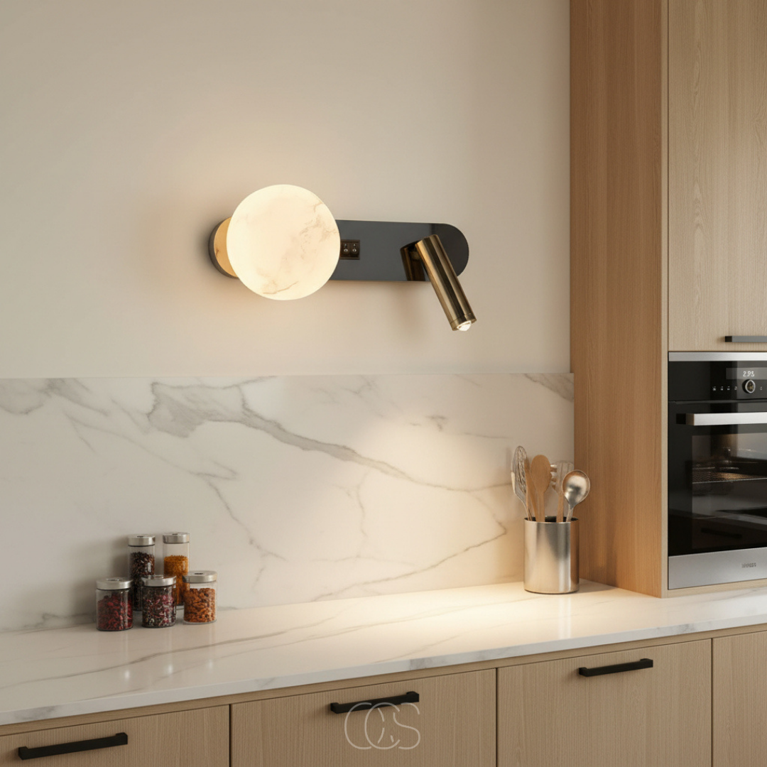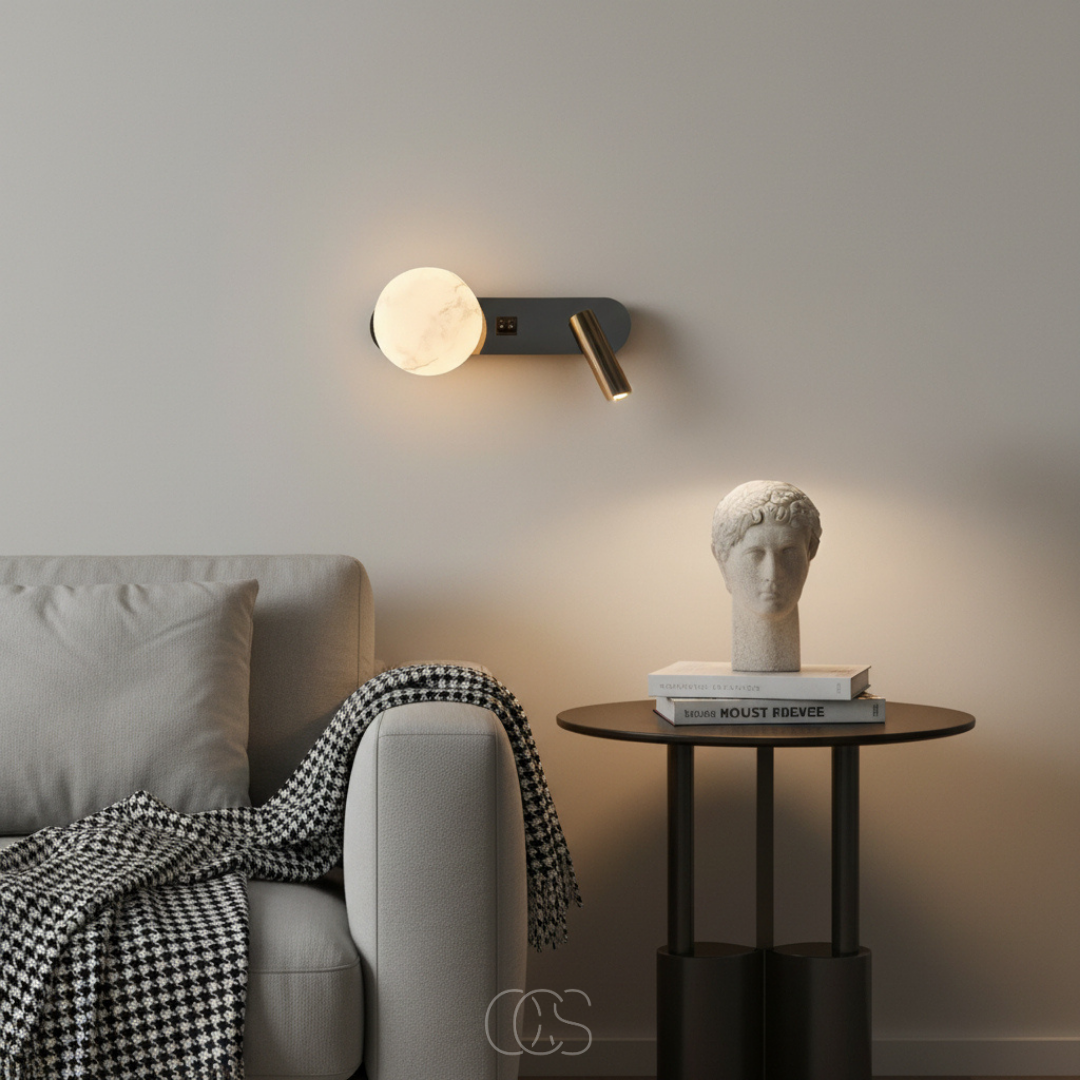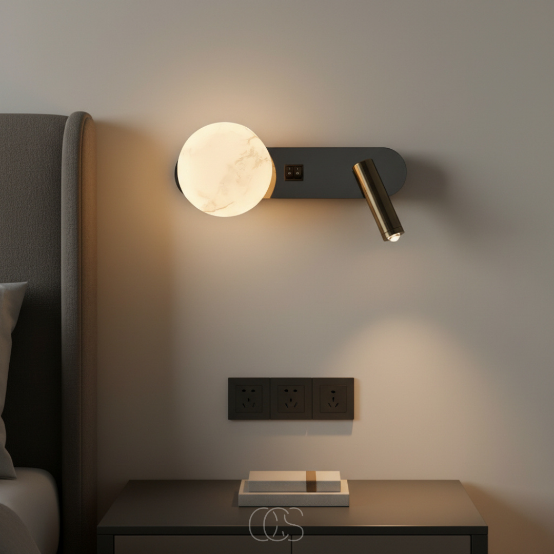 ✔ Twee lichtbronnen, twee schakelaars, totale controle — Gebruik enkel de spot. Of alleen de sfeerbol. Of allebei. Elke lichtbron heeft zijn eigen schakelaar, zodat je altijd de juiste balans vindt.